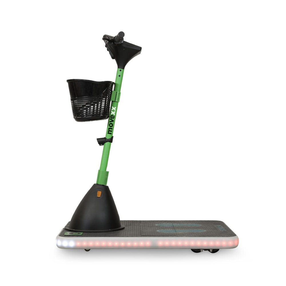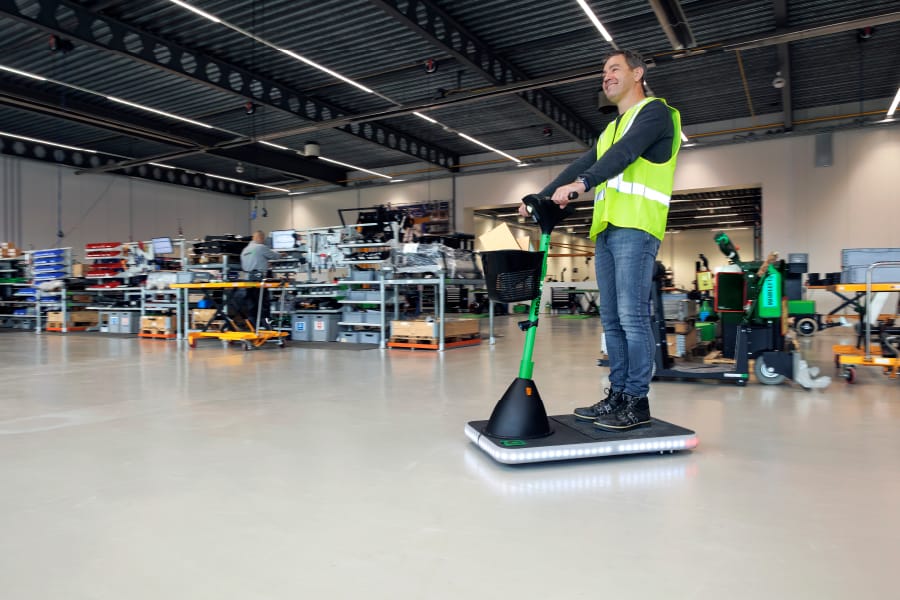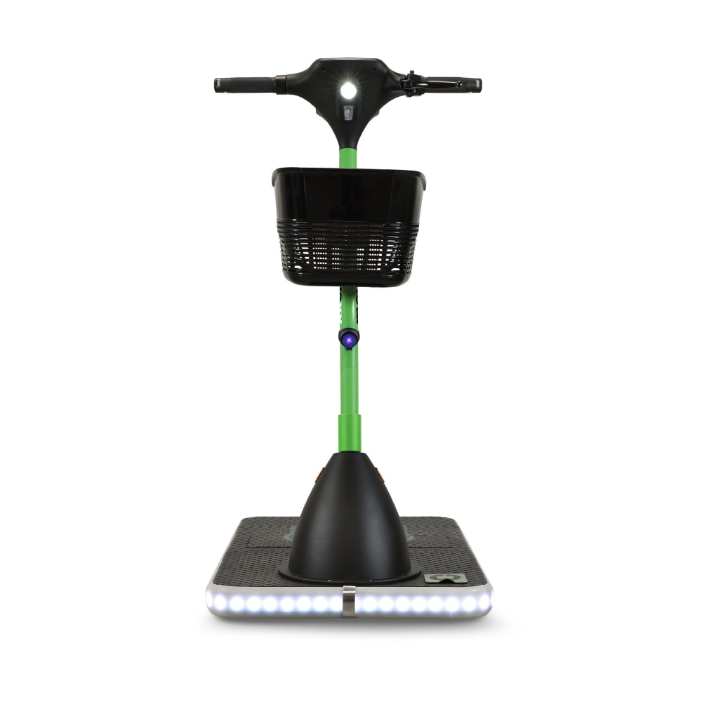 Díky patentovanému systému pěti kol nabízí výjimečnou stabilitu a vysokou ochranu proti převrácení. Je vybaven 360° bezpečnostním osvětlením, modrým světlem a výkonným předním světlometem, aby byl perfektně viditelný ze všech úhlů, a to i ve špatně osvětlených prostorách.